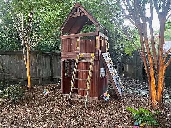 A spacious master bathroom with two separate counter spaces and sinks, a whirlpool tub, walk in shower and walk in closet. There are two large bedrooms. One with built in shelves , that share a bathroom. There is a great office nook with a built in desk and storage off the kitchen, and a large walk in laundry room complete with a 2nd refrigerator, cabinets and closets. One of the best features is a screened in porch with a fireplace that is off the dining area as well as the master suite. The backyard is complete with a stone patio and firepit area as well as a child's playhouse. It is loaded with landscape lighting throughout the entire yard. It all lights up on a timer every night (very beautiful).