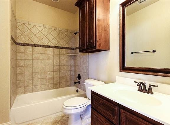 Beautiful American Traditional elevation on this 1.5-Story Home with stone facade which includes a sit down front porch and cozy covered patio at rear, herringbone brick accents along with hand cut brick corbels. 20x20 Tile and Glass inserts, Furniture Vanities in Master Bath, 6' Fenced Rear Yard, Chef's Kitchen, 3 cm Granite, Oil Rubbed Bronze fixtures throughout,Full Gutters, Sprinkler System! Please see the representative photos attached.