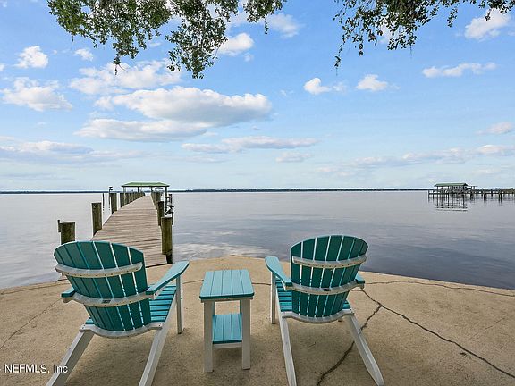REDUCED TO SELL...VERY MOTIVATED SELLER....RIVERFRONT HOME WITH FIREPLACE ON THE ST JOHNS RIVER AND A CANAL WITH DOCK ON SOUTHSIDE OF PROPERTY. Home has never had water damage/flooded from previous hurricanes. This 2 bedroom and 2 bath home on .74 acre is immaculate, updated, very well maintained and move-in ready. Enjoy river views from the living room, kitchen, bedroom, deck and large screened porch. Oversized 2 car garage with overhead storage. Nice dock with boat lift, jet ski lift and well built bulkhead. Nicely landscaped yard with irrigation system. Metal roof and a/c are newer. All kitchen appliances, washer and dryer are included. Canal on southside of property has its own dock. Survey available. Words cannot adequately describe the beauty of this home. If you are looking for a Riverfront home, take a look at this one, you will not be disappointed.