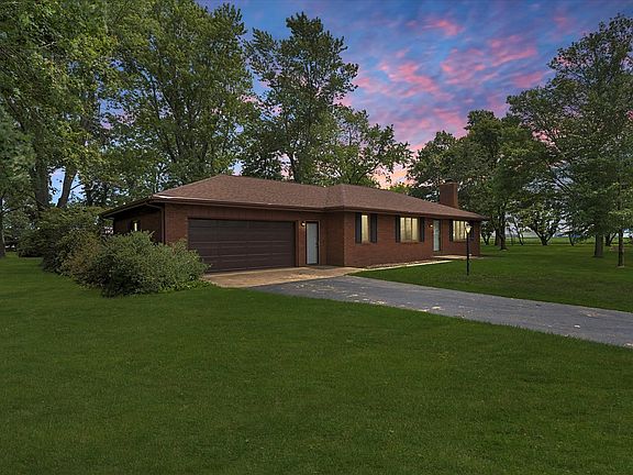 All Brick Ranch 3 bed 2 bath with 2 car attached garage with large screened in porch. Utility room, Eat in kitchen with dining room. Family room with fireplace. Sitting on over 3 acres with a 23x31 shop with rollup door. Property also includes a whole house propane Cummins Generator. Propane tank is leased.