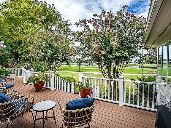 Amazing Sunsets, Panoramic Views of Several Fairways, Ponds and Marsh from Spacious Dataw Island Home! Gracious, inviting home has lovely curb appeal and a flowing floor plan that is great for comfortable living and entertaining. Unwind in the bright Carolina Room with walls of windows and bead board ceiling or expansive deck while watching the unobstructed views of water fowl flocking to the ponds and marsh. Kitchen is well equipped with double ovens, cabinets with pull out drawers and granite countertops. Family room has gas fireplace, Sonos music system and built-in cabinets. Separation of Master suite from guest wing provides privacy for all. Master Bedroom is large with two walk-in closets and updated bathroom with double vanities and large shower. Study/TV room has built-ins providing plenty of storage. Beautiful mature landscaping, upgraded garage flooring, large utility room are just a few of the features of this meticulously maintained home.