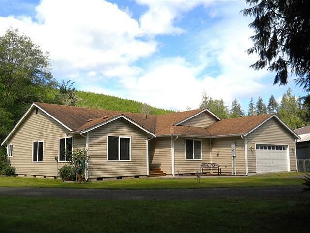 Gorgeous 9.71 acre oasis in Elma. This private park like property is home to a huge 2 bay shop w/ office space, large shipping container perfect for storage, pole barn; year round creek. The house is 2152 sqft w/ 3 bd 1.75 ba. The open floor plan is perfect for entertaining. Lots of windows let in natural light, vaulted ceilings, spacious office and large master suite w/ 5 piece bath. Close to shopping and 25 min to West Olympia.