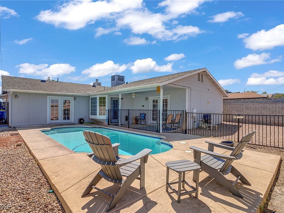 LISTED 20K BELOW APPRAISED VALUE ! Beautifully updated Henderson home with No HOA! Enjoy your private backyard retreat featuring a View of Iconic Las Vegas Strip , covered patio with ceiling fan and a Fully fenced in pool—perfect for entertaining. Home offers a newer roof & A/C, OWNED solar panels to save money year round , and fresh exterior paint. Inside boasts 3 bedrooms + office nook, wood-burning fireplace, and remodeled kitchen with white shaker cabinets, granite counters, tile backsplash & stainless appliances. Upgraded hall bath with Walk in Shower ,dual vanities & tile. Large hall closet currently used as custom pantry with built-ins. Spacious primary suite features French doors to patio, huge walk-in closet, and a gorgeous ensuite with dual bowl sinks & mosaic tile. Smart thermostat, low-maintenance desert landscaping, and fantastic location make this a must-see!