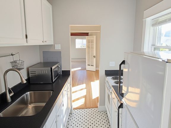Historic mailboxesThree-bedroom two-bath condoFormal dining areaWhite-on-white galley kitchenVintage wood casingsCrown moldingsCurved wood staircases