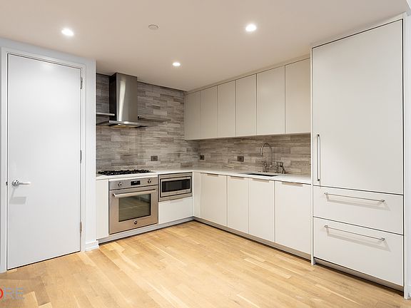 The beautifully landscaped outdoor spaces include a private garden, offering a quiet refuge, and a rooftop terrace featuring a BBQ grill, outdoor kitchen, and dining areasperfect for relaxing or entertaining with iconic New York City views. Additional building amenities include a fully equipped complimentary fitness center, onsite residents' laundry, and private storage units.