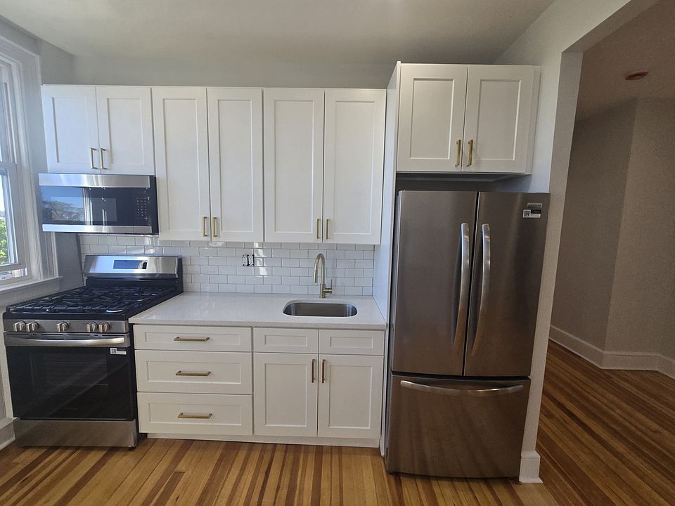 3 bedroom apartment on 3rd floor, new bathroom new kitchen with stainless steel appliances, large living room and good size bedrooms.