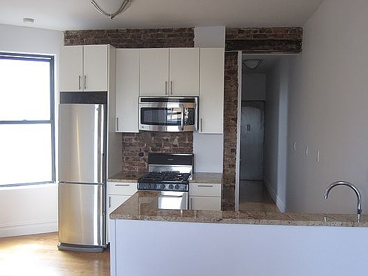 Fantastic open, BRIGHT SUN-FILLED, and spacious 3-bedroom on the 5th floor of a very well maintained walk-up. This renovated apartment with exposed brick accents features a large open chefs kitchen, SPACIOUS common room, and 3 well proportioned bedrooms all fitting a full or queen bed. All bedrooms have VERY spacious closets with above additional storage. With high ceilings and lots of natural light, this is a great space to share or entertain in! Well situated close to buses, F train, and all the fine dining that the EV/ LES has to offer. This will not last, please contact us today for a private viewing! VIDEO TOUR AVAILABLE ONE MONTH BROKER FEE APPLIES