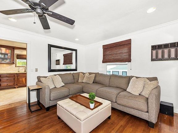 TURN KEY single story adorable home that has been tastefully updated. Upon arrival you'll see the easy maintenance turf front yard surrounded by vinyl fence. Entering the home you will find yourself in the entryway and living room separated by a custom solid wood built-in entertainment center that has a hidden storage desk & electric fireplace. The kitchen has been completely remodeled to include solid walnut raised panel custom cabinets with under lighting, granite countertops, large sink, stainless steel appliances, and tile backsplash. The master bedroom has a custom built in solid wood dresser with an electric fireplace with a full bathroom. Other upgrades included are vinyl windows, crown molding, newer baseboards, recessed lighting attic fan, ceiling fans in both bedrooms, newer roof, freshly painted inside and out, and seperate laundry area with custom cabinets. Original solid wood flooring, tile floor kitchen, and carpet in the guest room. The backyard is equally as impressive as inside and is ready for entertaining. Large pool size lot with a gas fire pit & fountain combo, stamped concrete, dedicated bbq area over a Trex deck, several fruits/vegetables (avocados, pears, oranges, mangos, lemons, blackberries, figs, strawberries, tomatoes, and green onions) all on manual irrigation and natural boulders that hold umbrellas for shade. The garage has been converted to a bonus room but could easily be converted back if desired. Close proximity to Grand Ave with some of the best restaurants in Escondido. Come see it before it's gone because this one won't last long!!