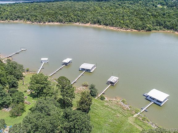 LAKEFRONT LIVING AT ITS FINEST!! YOU HAVE TO SEE THIS CUSTOM HOME WITH 2-STALL PRIVATE BOAT DOCK--JUST MOMENTS FROM EVERGREEN MARINA! Nestled on the serene shores of Lake Eufaula this lakefront home is a masterpiece of luxury and tranquility. With meticulous attention to detail and breathtaking views, every aspect of this retreat is designed to elevate your living experience. From the well-thought-out floor plan to the multiple living areas, this home will make the perfect place to enjoy making memories with family and friends. Entertain guests on the spacious covered patio, host lakeside gatherings, or simply savor quiet moments taking in the relaxing views. Grab all of the goodies for s'mores and spend an evening around the fire pit while star-gazing under the wide, open Oklahoma sky. The outdoor living space is an extension of the beauty that surrounds this amazing property. As you step inside you will find the chef's kitchen to be a dream for whipping up a tasty meal for all of your favorite people. As you wrap up a day of experiencing all of your adventures on Lake Eufaula, you can retire to the primary suite to unwind. After getting a good night's rest, imagine starting your day by pouring a cup of your favorite coffee and making your way to the patio to indulge in the gentle lapping of the water and soaking in the sounds of nature. This getaway is AirBnB friendly and offers an additional detached garage for all of your storage needs. DON'T SKIP BY THIS ONE...YOU ARE GOING TO FALL IN LOVE! Call today to schedule your private tour to experience how truly amazing this property is!!