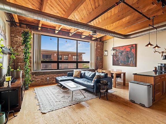 Welcome to urban loft living in Milwaukee's coveted Brewers Hill! This stylish condo blends industrial charm with modern comfort--featuring soaring timber-beamed ceilings, exposed brick, and oversized windows that flood the space with natural light. The open kitchen with granite counters and a large peninsula flows into spacious living and dining areas. Retreat to a generous primary suite, while the secondary bedroom offers a walk-in closet. The den provides flexible space for work or guests. Includes in-unit laundry, 1-car garage parking, and private storage. Enjoy a rooftop deck with panoramic skyline views--perfect for BBQs, sunset cocktails or hosting friends. Close to the Riverwalk, Uncle Wolfie's, Avli, Lakefront Brewery & more!