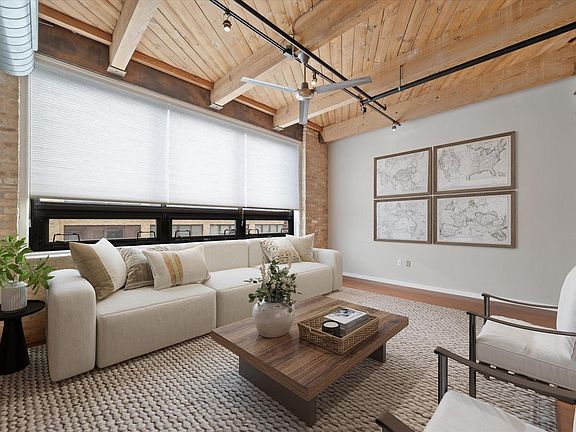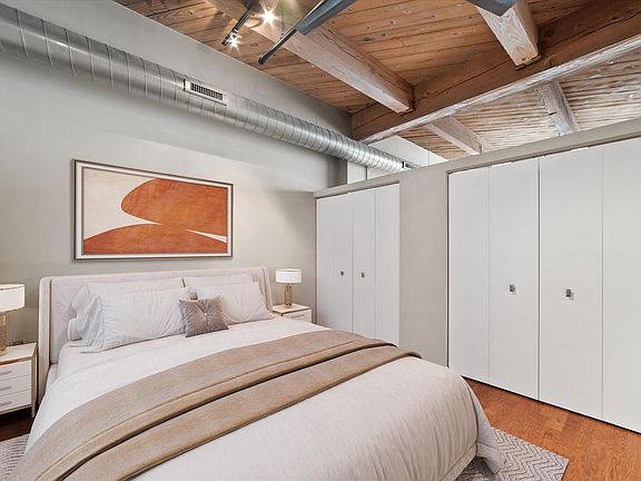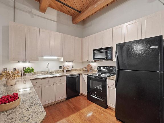 Cobblers Lofts Move In Ready 1 Bed 1 Bath Beauty. Be prepared to fall in love with the cozy charm and comfort of your 3rd floor condo. Freshly painted throughout! The moment you enter you'll be drawn in by the large windows bathing the east facing living room in natural light. Gleaming hardwood floors in the living room, bedroom and kitchen. Notice the new closet doors in the entry way, and the in unit laundry. To your right, your dinette, or den or home office. The white kitchen features solid counter tops and a brand new oven/range. Cobblers Lofts offers a roof top oasis deck common area with fabulous city views. In the mood for brunch? Uncle Wolfie's is a short stroll away. Dinner? Avli is even closer? Feel like a local brew? Lakefront Brewery is also just steps away.