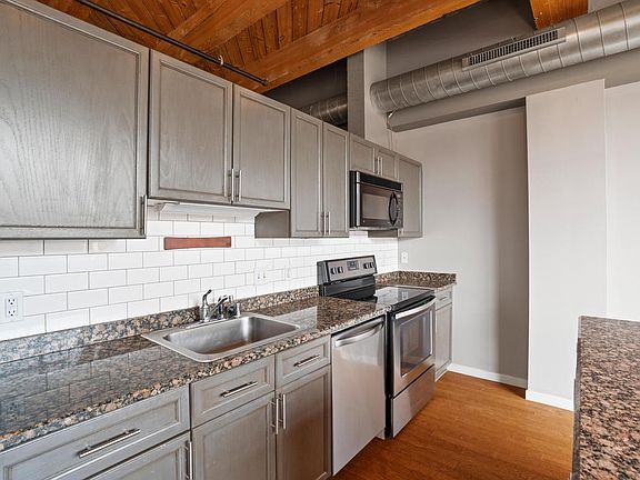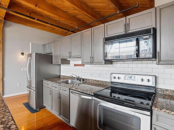 Welcome to this sun soaked 1917 Cream City Brick Condo in Brewers Hill that beautifully blends historical charm with modern conveniences. As you step inside, you'll be captivated by the 12-foot timbered ceilings that pay homage to the building's industrial roots. The expansive east-facing windows flood the open concept living area with natural light, highlighting the gleaming hardwood floors throughout. Enjoy the convenience of in-unit laundry and the luxury of a dedicated parking space. Additional storage is conveniently located on the same floor. Don't miss the incredible rooftop patio, offering breathtaking 360-degree views of the city skyline--a true urban oasis. This condo is more than a home; it's a lifestyle!