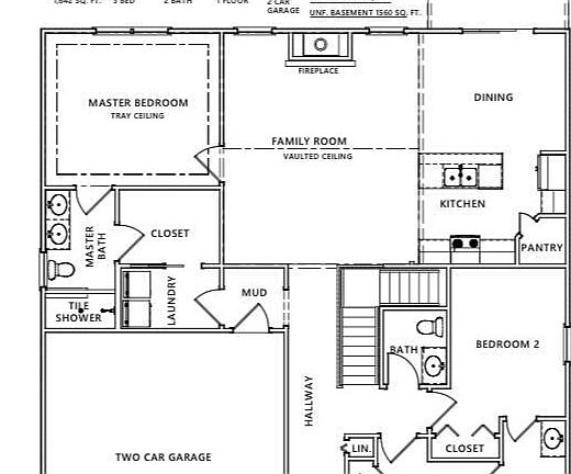 This innovative 1,642 square foot main floor area has an additional basement with a possible bonus room and stubbed for a future bathroom. This two-floor home is in the heart of the community. Designed for the larger family, the ranch style floor plan also offers 900 square feet of partially finished drive-under garage. a larger family room with a vaulted ceiling, 3 bedrooms, and 2.5 bathrooms. The primary bedroom showcases a tray ceiling and the primary ensuite bathroom features an exquisite tile shower. The primary bedroom is also paired with an impressive walk-in closet. The mud room is conveniently located just off the garage entry and opens to the laundry room.