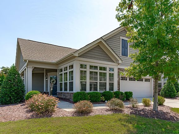 Welcome to the Courtyard at O'Kelly Chapel, an exquisite 55+ community located in Cary, NC! This one-story luxury ranch, 2 Bedroom, 2 Bath + Office/Study home has been freshly painted just for you! (New carpet installed in the bedrooms, too!) The open floor plan w/large main living area provides so many options for furniture placement and entertaining, adorned with windows and a trey ceiling. The Chef's Kitchen has expansive countertops, plenty of storage and a HUGE island! The Primary Suite is tucked away in the back of the home, has a large closet and an opulent bath with a walk-in shower and more natural light. The OFFICE has double doors, looks out front and has TWO FULL WALLS of WINDOWS! The garage has no steps into the home, and there are multiple storage options with deep, expansive closets throughout! All appliances STAY! Plenty of outdoor living with the covered porch, fenced yard, back patio and even a PUTTING GREEEN on this rare, private lot. Hurry!