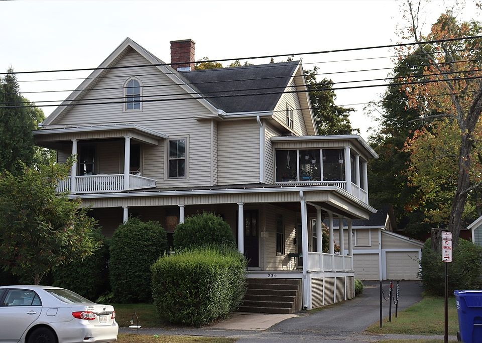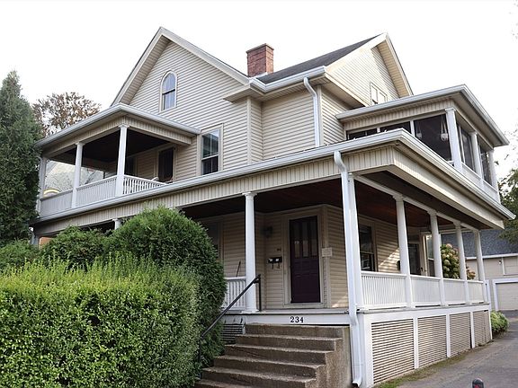 Beautifully maintained three family in Smith College neighorhood near Childs Park. There are 2 spacious 2 bedroom apts and a charming one bedroom apt on two levels with a granite and cherry kitchen. The larger two bedroom apts. have high ceilings and original period detail. The first floor apt has French doors, pocket doors, decorative fire place and wraparound porch plus a private side porch and in unit laundry. The upper 2 bed. has crown molding, decorative f.p. ,a large sunny kitchen with one screened and one open porch. All untis are sunfilled with wood floors throughout. There is a three car garage in great condition with loft space and storage. Excellent rental history, one bedroom apt. currently available could be owner occupant. Many recent improvements include gutters, garage roof, electric, new 2nd floor kitchen, new burners, and washer/dryer. Walk to vibrant downtown Northampton with shops, galleries, restaurants and entertainment. Close to major highways and schools.