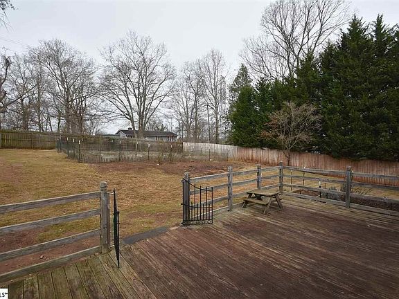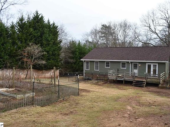 This SHARP LOOKING home on 0.38 acres has UPGRADES and is tucked back into a QUIET neighborhood in the RIVERSIDE HS district. The home has a great OPEN FLOOR PLAN and wood burning FIREPLACE that makes for comfy living. MOVE IN READY with many of the major expenses taken care of. New CARPET 2018. New ROOF, SIDING, and GUTTERS in 2017. New HVAC in 2015. GUTTER GUARDS are handy too. Gardeners will love the RAISED BEDS in the FENCED back yard; and if you love chickens everything is here including 2 composting bins. The coop can make a great POTTING SHED if that suits you better. There are no restrictions here, so chickens are ok if you like. Out back a STORAGE SHED gives you additional space; has wiring for lights but is not hooked up to power. Get ready to harvest here ??? there are several BLUEBERRY bushes, a FIG tree, and 2 GRAPE vines. Hang out on the back DECK, listen to the cicadas down by the Enoree River and enjoy the natural setting if this home! Bermuda grass keeps this yard looks sharp. Inside the kitchen is large with a PANTRY and has easy access to a nice dining room with French doors and the main living area. Rooms are fairly large and the hall bathroom has a DOUBLE VANITY with room for bustling kids. All window treatments will convey. Great home in a great school district!