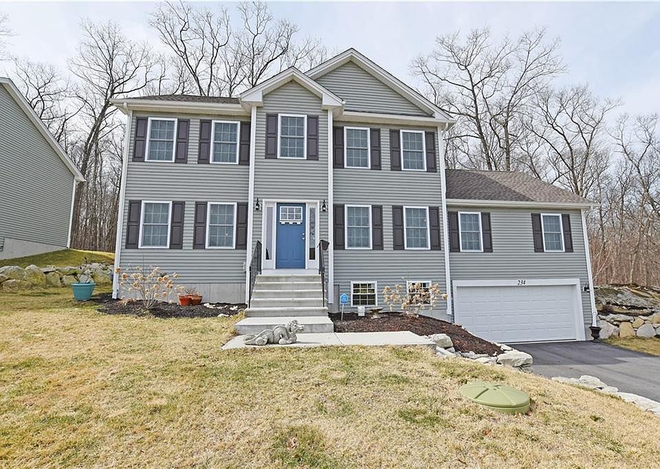 Outstanding two-year young Colonial in highly desirable High Hawk Estates! Open concept, eat-in kitchen with granite counters and stainless steel appliances along with spacious formal dining room. The expansive great room features cathedral ceilings and a floor to ceiling stone fireplace, which is wired and ready for TV installation. Gleaming hardwoods throughout the first floor. Two full baths and one-half bath, which also has a laundry room. Impressive master bedroom with two additional bedrooms and home office or potential extra bedroom. The Master bedroom boasts an ensuite bathroom with Jacuzzi tub and shower and a walk-in closet. Basement with high ceilings provides an opportunity to finish/expand the lower living areas and walk out through the two-car garage. Dual zoned heating and central air. Community of like homes with underground utilities in a quiet neighborhood. Property backs to Booth Pond Conservation Area. One way in and out of development, as road circles to eliminate through traffic. Convenient to MA / RI / CT attractions and highway. Move-in ready! Nothing to do except call the movers.
