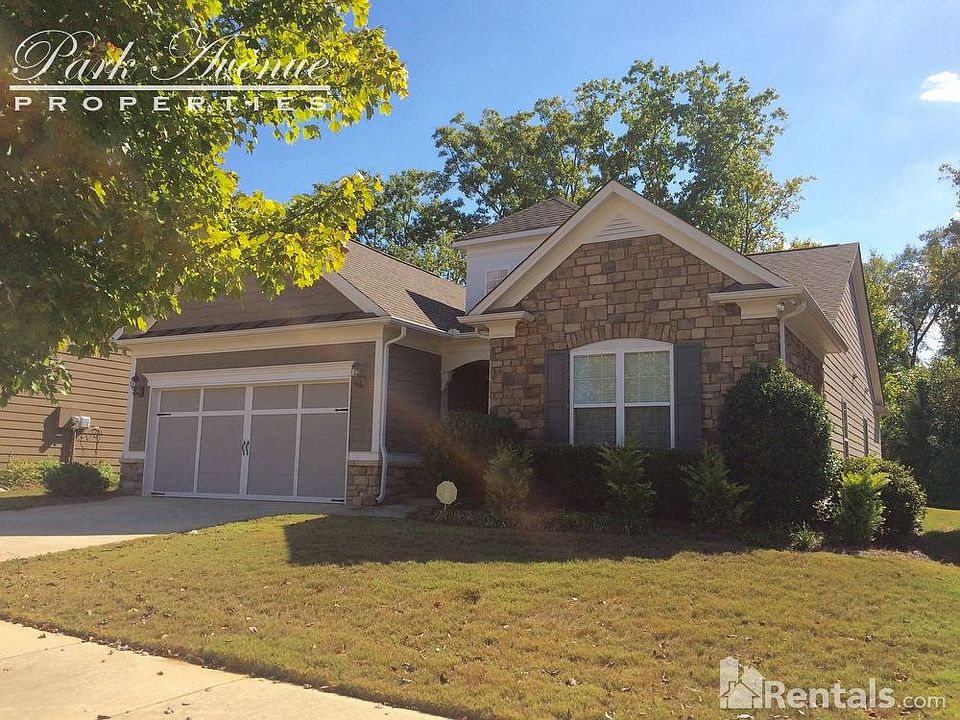 This partial stone front ranch says regal yet cozy! Beautiful wood floors and crown molding throughout the living space add style. Enjoy the formal dining area with upgraded lighting for your more upscale affairs. The family room is open to the kitchen and features a fireplace with decorative mantle to the ceiling! A cozy sun room provides a little additional living space. The gorgeous eat-in kitchen is all you could ask for! Beautiful, abundant cabinetry, granite counters, a tiled backsplash, a gas stove, matching stainless steel appliances and a breakfast bar! The master suite features a tray ceiling and a five piece on-suite bath! Located in the Heron Bay Golf and Country Club, enjoy the suburbs in style with easy access to I-75 and a quick commute into Atlanta!