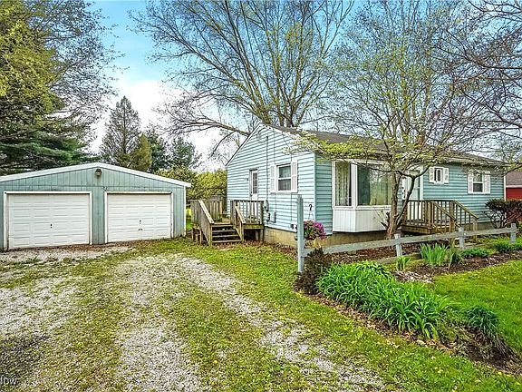 Tucked away in Franklin Township, in Portage County on almost a ½ acre, this 3-bedroom 1 bath ranch offers country living close to shopping, and restaurants. This home has a functional layout with a bay window with a window seat in the living room, and a deck just outside the eat in the kitchen. This would be a great place to drink your morning coffee or read a good book. A full basement could be additional living space too. Step outside to the two-car detached garage with extra storage area for all your outdoor equipment and enjoy this spacious yard – perfect for gardening, outdoor gatherings around the firepit or just relax in nature. Looking for more park-like settings take, a quick 5-minute drive to local parks: Silver Springs, and Wood Hollow Metro Park. With a little TLC this property has great potential to be a great home or an investment. Hot water tank 2021, Furnace 2009, water softener 2019, sump pump 2023, age of roof is unknown. This home is selling AS IS. Call for a showing today and make this your home sweet home! If you are driving by, there are road closed signs, keep going there is bridge work being done just beyond the property