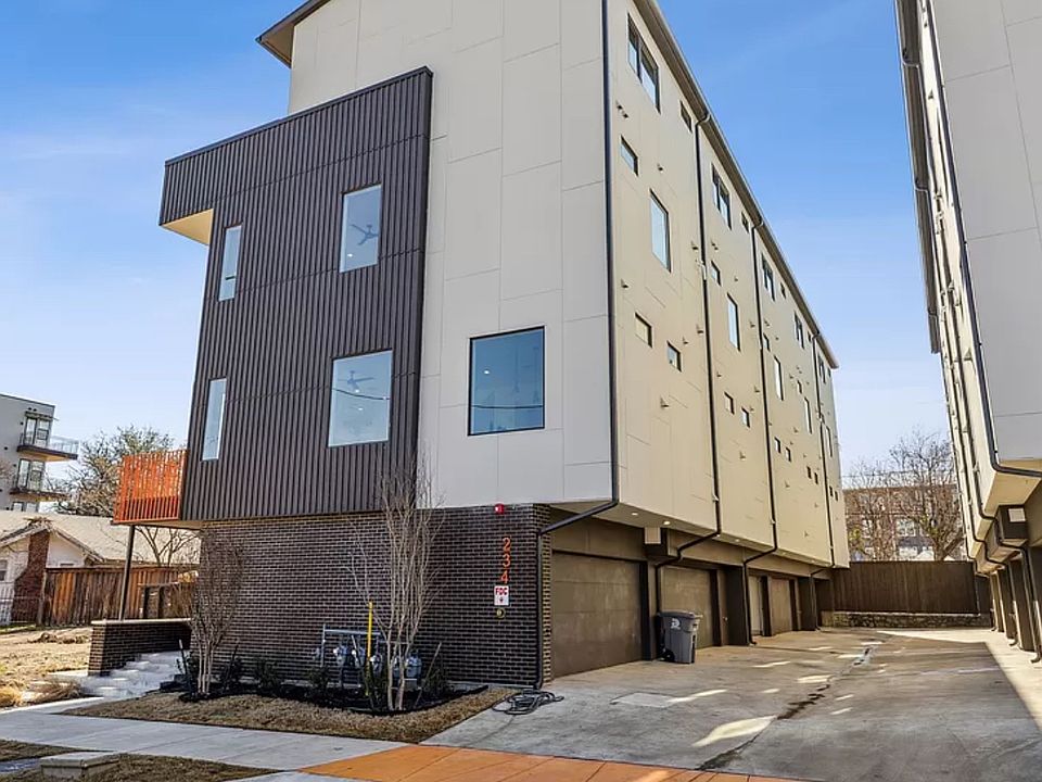 This 3 story contemporary home is located at the heart of the booming Bishop Arts District in Oak Cliff. The brilliant architecture displays high ceilings, oversized windows, and designer finishes. Master suite with ample master bathroom and walk in closet is located on the top floor as well as a terrace with supreme city views. Two bedrooms on the second floor share a full size bathroom. Hardwood floor throughout except the bedrooms. The fully equipped laundry room is also on the second floor while the open concept kitchen- living room area provides plenty of room for entertainment. Kitchen Aid appliances through, pantry and a half bathroom complete the first floor.