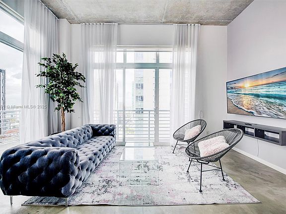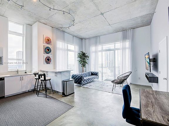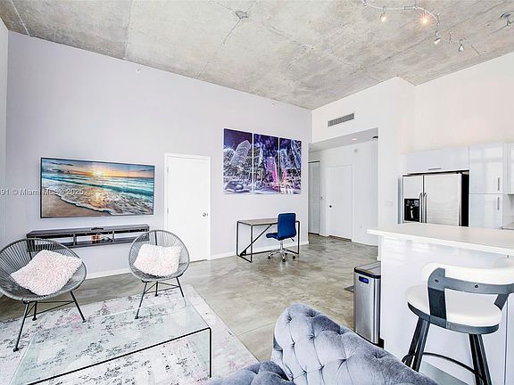 Available Nov 25-Jan 4 and then from Feb 15, one month min,, Furnished Penthouse 2/2 at Loft 1, Downtown Miami, fully stocked kitchen, no association approval required, garage spot, electricity and internet included. Extra high ceiling, large wrap-around terrace, beautiful views. Only short-term, min 1 month lease, Vacant easy to show.