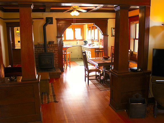 Beautifully-restored furnished home in the historic Old Bend Stay in a historic home in the heart of Old Bend. This home was built in 1913 and has been lovingly restored in the Arts and Crafts tradition with gorgeous woodworking throughout. It has a historic charm yet is spacious and fully furnished with all the comforts of a modern home. The eat-in kitchen has modern appliances including a gas stove and a walk-in pantry. Entertain guests in the formal dining room or cozy up to the gas stove for a quiet evening. All furniture, housewares (pots, pans, dishes, and utensils) and washer/dryer are included, plus condiments and spices for preparing meals. With two bedrooms and one bath on the main level and a master suite with an extra-large bathroom upstairs, this two-story home has plenty of space and privacy. Enjoy a lovely evening rocking on the wide front porch or sip your morning coffee under a covered patio in the private backyard with beautiful landscaping. Once you arrive here, you won't want to leave! Features: Fully-furnished Utilities and internet included Gas stand-alone stove Washer/dryer Dishwasher Patio with seating Private, fenced backyard Walking distance to downtown Driveway parking for 2 vehicles Details: 3 BR / 2 BA 2,356 sq ft Lease Terms: Flexible lease lengths available Rent: $3,600 / month Security deposit: $3,700 Availability: Immediately Pet Policy: We love pets but these hardwood floors do not, so no pets allowed Contact: