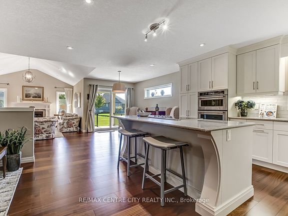 Detached brick bungalowMain-floor livingVaulted ceilingsCozy gas fireplaceLarge windowsGranite countertopsBreakfast bar