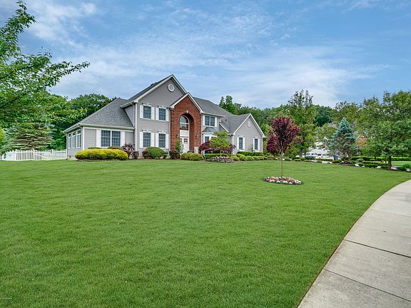 Sitting at the rear of Seven Oaks at Freehold and nestled up against 17 acres of protected woodlands, this custom colonial offers spectacular quality and contemporary styling on an acre of privacy. With its well proportioned and thoughtfully designed 3,950 SF, plus a full finished basement, there is plenty of room for everyone to spread out without getting lost. Exceptionally well maintained, this home features 4 BR's and 3.5 BA's, plus a 1st floor built-in office that could be a 5th BR. The custom kitchen is a chef's delight with top of the line cabinetry, Thermador and Viking appliances and a bright open breakfast room that opens onto an expansive rear deck, all overlooking the stunning 2 story family room with FP. There's also room for quiet contemplation (upscale casual LR),