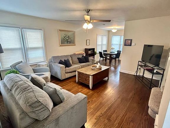 Modern 3 bedroom 1 bath apartment in downtown Libertyville. Comfortably sleeps 8. Two king beds and one queen bed. Pull out sofa in living room.