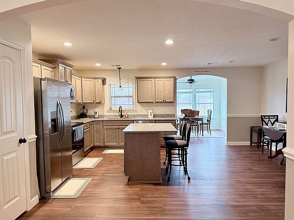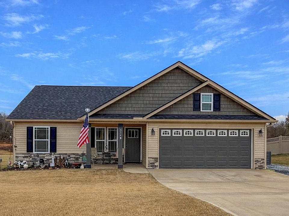 Welcome Home! This nearly new 3 bedroom, 2 bath home awaits you. If you are looking for a move-in ready home that has no HOA, a half an acre of land and is beautiful you have found it. Properties like this are a gem! This home has great curb appeal with its stone accents and neutral colors. The covered front porch provides enough room for 2 chairs or a small bench. As soon as you open the front door, you will fall in love if you haven't already. The neutral colors give the home a warm but bright feeling. The raised ceilings showcase the open floorplan along with arched doorways and rope lighting that give this home an extra touch. The living area has LVP flooring along with a corner fireplace to make this room complete. Do you like entertaining or watching tv while in the kitchen, no problem as this home will allow you to do both with the ample space and openness to the living area. The large eat-in kitchen with warm wood cabinetry, center island with seating, granite countertops, pantry and recessed lighting are sure to please. Just off the kitchen you will find a 12x12 sunroom that could be used as a dining room or office overlooking the huge back yard. The options are endless with this extra space. The 12x12 covered deck is just a step away, keeping you dry, shaded and out of the elements while still able to enjoy the peace and tranquility of the rural life. This home has just over a half an acre with endless possibilities of fun!! Step back inside to check out the bedrooms of this beautiful home. The primary suite is located just off of the kitchen and dining area. The tray ceiling takes this room to new levels with crown molding and rope lighting. Neutral paint, carpet flooring and large windows that allow you to overlook the back yard keep this room light and airy. You will also find a walk-in closet and full bathroom with granite countertops. The secondary bedrooms both have the same neutral paint and carpet as the primary, and are prewired for ceiling fans. The guest bath located between the secondary bedrooms has LVP flooring, a tub/shower combo and granite countertops. To finish out the interior of this lovely home you will find a walk in laundry room located just off the 2 car garage with workshop area. There is also a small storage building with enough room to store your lawn equipment and supplies. Don't hesitate to schedule your appointment to view this home, as it won't last long!