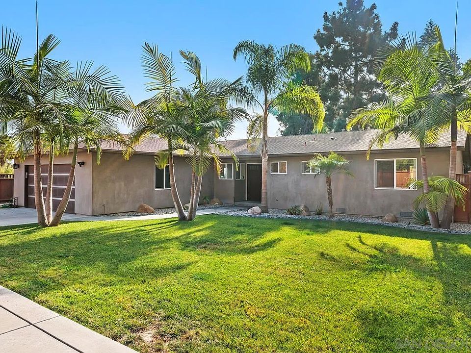 Lovely 1-level, remodeled Olivenhain home on a half-acre lot on a quiet private street well off the main road! This sunny home offers an open floorplan, pleasant country views, and oversized private backyard. The spacious kitchen with quartz counters opens to living room and dining area. The living room offers fireplace, Brazilian wood floors, and cantina accordion doors to blend your indoor/outdoor California living! Plenty of room to expand the home, or add an ADU or even a pickleball court! The finished double garage has an epoxy floor and storage cabinets galore. Don't miss the RV parking, lemon and plum trees, and professional landscaping.