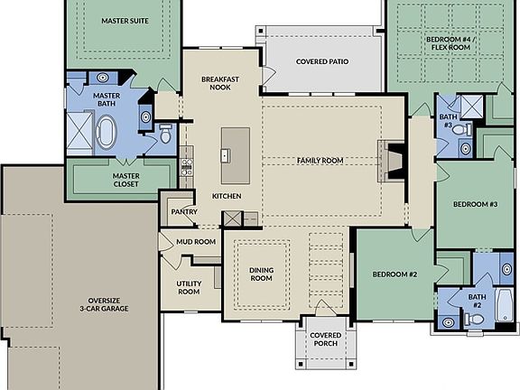 - All Bedrooms Down, Garden Tub/Roman Tub, High Ceilings, Primary Downstairs, Main Level Primary, Open Floorplan, Pull Down Attic Stairs, Separate Shower, Tub Shower, Walk-In Closet(s), Granite Counters, Kitchen/Family Room Combo