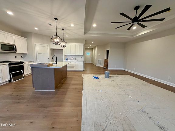 The stunning new construction offers one level living with 3 bedrooms, 2 bathrooms, and a 2 car garage located in the heart of Jonesborough. Upon entering you will find an oversized living room featuring hardwood floors, tray ceilings and custom brick natural gas log fireplace. The chef of the family will fall in love the gourmet kitchen that offers plenty of shaker style cabinetry (soft close doors and drawers), quartz countertops, tiled backsplash, stainless appliances (gas range), pantry and a large island overlooking the living room. The primary suite is sure to impress with tray ceilings, accent wall, dual vanity sinks, 5' custom tile shower, and large walk-in closet. For added privacy, the 2 additional bedrooms, each with ample closet space, and 2nd bathroom are on the other side of the home. This home features hardwood floors throughout- NO carpet. Unwind in the evenings on the covered deck overlooking the private backyard. This home features natural gas- tankless water heater, gas range, HVAC and fireplace. Spring Ridge is brand new and located in the heart of Jonesborough close to downtown and Johnson City. This quality home has a 1 year builder's warranty. Taxes to be assessed. All information herein deemed reliable but subject to buyers verification.
