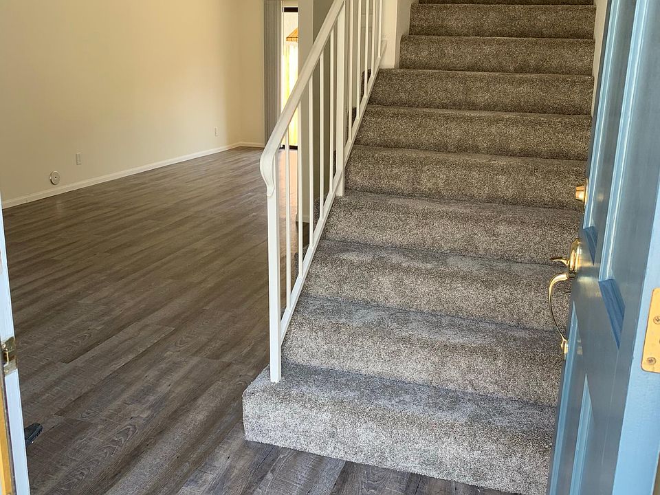 Apartment completely upgraded. Kitchen and bathrooms with BLACK GRANITE countertops and stainless dishwasher, stove and microwave with shaker style cabinets. New vinyl wood plank floors in living and dining area in kitchen and both bathrooms. Newer CENTRAL AIR. New paint. New carpet. AUTO GATE. 2 CAR GARAGE. Private patio. Owners pays trash, water, sewer and gardener. Tenant pays for gas and electricity.