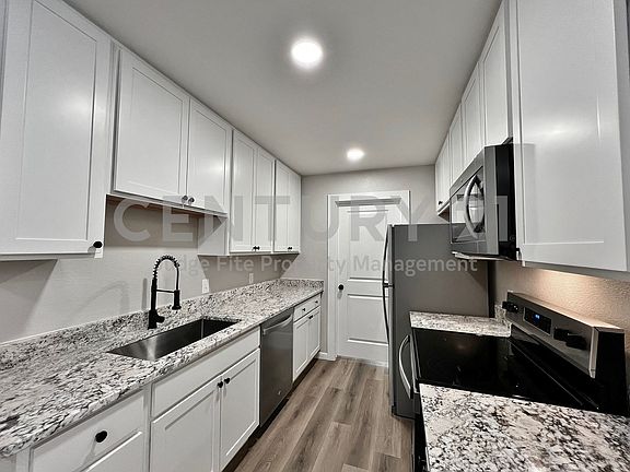 Updated fixturesFenced yardBuilt-in microwaveCeiling fansGranite countertopsLuxury plank flooringGalley style kitchen