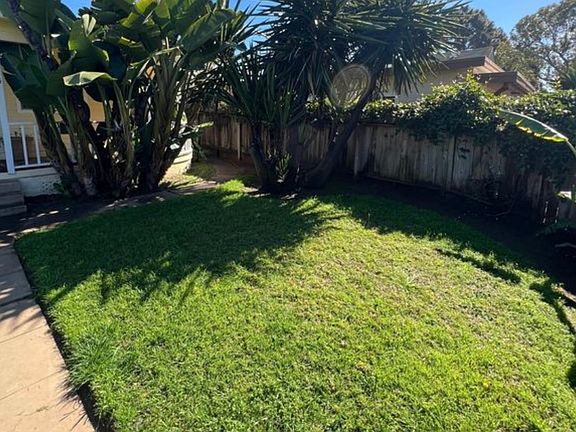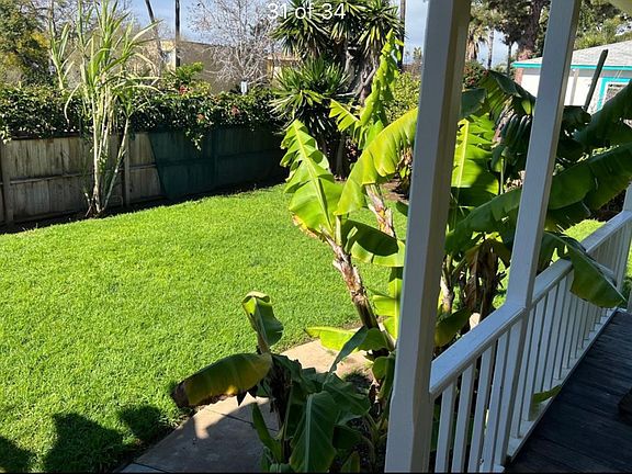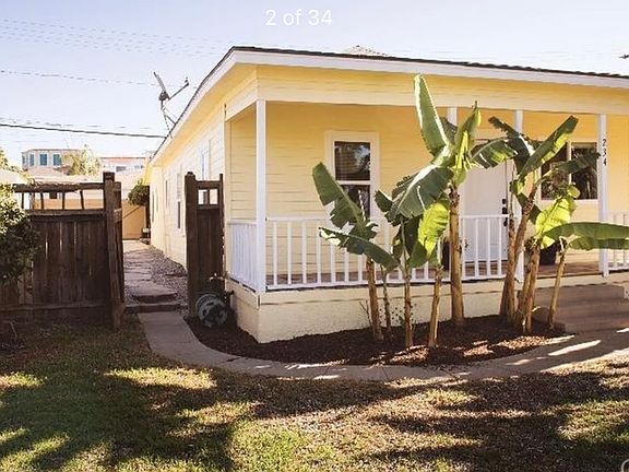 Gem of a beach cottage with wrap around porch and California beach town soul. Large high-fenced private yard with citrus, mango, bananas and sugar cane. Feels very private and safe and has old coastal feel - just come in the gate, hear the wind in the palms and relax at your beach house. Blocks from beach and all downtown Oceanside has to offer. Walk to beach, pier, public transit, restaurants, theaters, etc. Close to freeway for easy access. Just installed residential turf in front yard. Remote controlled gate at alley with plenty of enclosed parking and large hardscape back and side yard for cars, boat or other outdoor activities (art, BBQ, etc). Work or storage shed with windows and power for tools, surfboards, etc. Wonderful beach neighborhood feel. Easy access to freeway and schools. No garage, but there is off street parking for 3-4 cars inside electric gate.