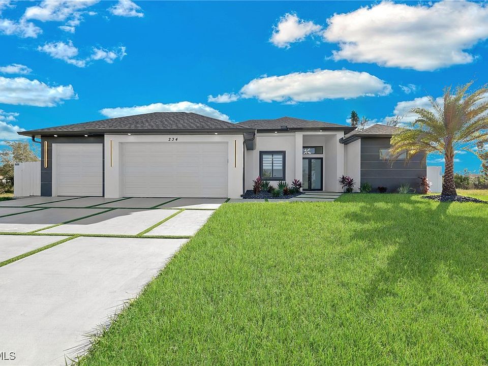 Beautiful Waterfront this spectacular POOL HOME located in the desirable area of SW Cape Coral ,The open concept offers 1931 sq.ft of fabulous living area, tray ceilings, HURRICANE IMPACT DOORS & WINDOWS, custom contemporary cabinetry, quartz countertops, zebra blinds with privacy , . TILE THROUGHOUT! Paver driveway & pool deck. When you view the pictures you will see all the upgrades this new home has to offer . Large paved lanai area , a pool cage has fabulous picture window for unobstructed water views. AMAZING LANDSCAPING! . Spacious family room with feature wall & fireplace. East Exposure for sunsets & afternoon sunlight on the Resort Pool Spa and with a salt system, and sun shelf for sunbathing, BOATERS very close to Matlacha for wet & dry boat storage, boat rentals, restaurants, dining, events. Just enough room to start a family or to retire to with all the extra storage