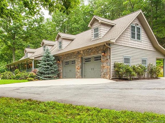 This magnificent custom home is equipped with all the modern amenities and situated on 16+ acres of beautiful rolling property less than 25 minutes to Asheville, NC. Truly a rare combination of privacy, convenience and quality. You will love the open floor plan that features a massive two sided stone fireplace and stunning custom kitchen designed with every detail in mind. The kitchen is equipped with multiple sinks and islands, a coffee bar, walk in pantry and plenty of storage. The open floor plan is filled with natural light and flows seamlessly onto the outdoor covered porch with wood burning stone fireplace. The outdoor living space provides for a stunning setting to enjoy in private or while entertaining company. The master bedroom suite is very generous in size including an additional sitting room with gas logs and custom walk in closet. Other features include a main level two car garage, two story barn/building and detached garage with living quarters above.