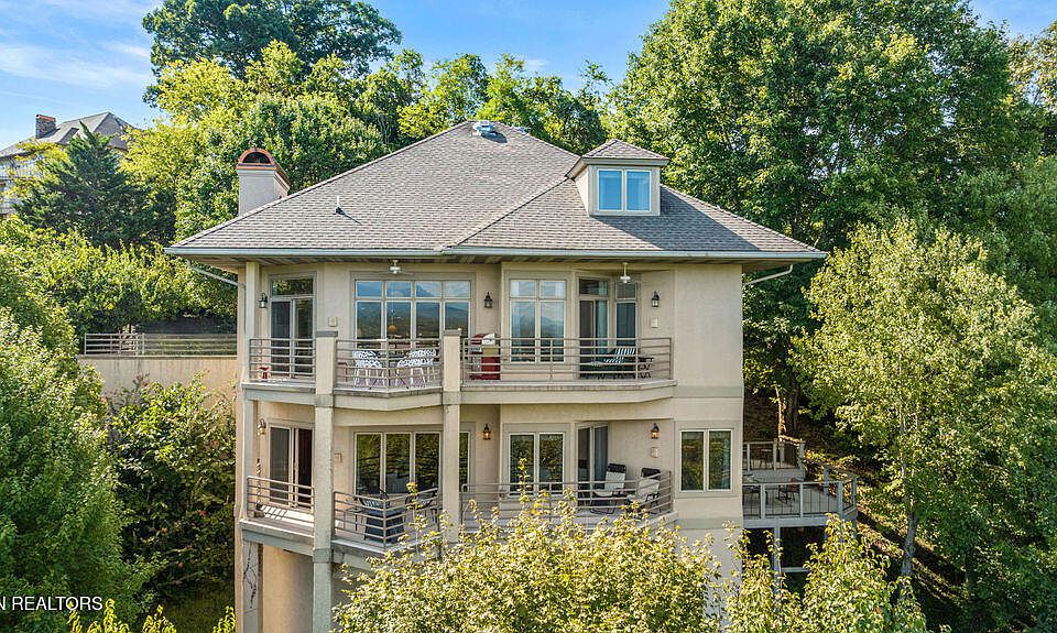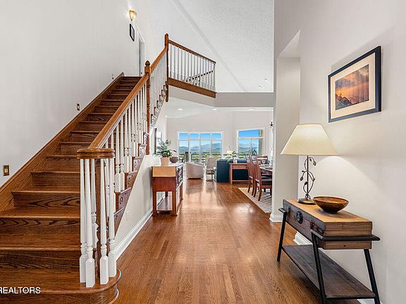 Unmatched Gorgeous Mountain Views in Prestigious Saddleback Ridge! Welcome to one of the finest homes in Southeast Tennessee, perfectly nestled in the highly sought-after Saddleback Ridge subdivision— just 5 minutes from downtown Sevierville. Residents love the community pool with its sweeping views of the Great Smoky Mountains National Park. This custom-built residence offers breathtaking panoramic views of Sevierville, Pigeon Forge, and the iconic Mt. LeConte, showcased through a dramatic wall of windows. Private & Elegant Setting, Tucked away at the end of a cul-de-sac and surrounded by mature trees, this home feels like your own private park. No neighbors in sight! The beautifully landscaped curved driveway with a generous turnaround provides elegance and convenience, offering parking for up to 5 cars. You will love the Grand Interior! Step inside to soaring 20foot cathedral ceilings in the great room, anchored by a striking fireplace and crowned by a majestic wooden spindle staircase leading to a one-of-a-kind crow's nest. Gleaming hardwood floors flow throughout the main level, highlighting exceptional craftsmanship and attention to detail. Gourmet Kitchen! The recently remodeled kitchen is a chef's dream, featuring: Custom cherry cabinetry, Sparkling granite countertops, Shimmering tile backsplash, High-end stainless steel appliances. Perfect for everyday living and entertaining alike. Spacious Layout! This four-bedroom, four-bath home offers a thoughtful layout:Main-level master suite for ease and comfort, Upstairs double guest suite (one ideal for a bunk room, allowing the home to live as a 5-bedroom) Additional master suite downstairs plus a 4th bedroom down. Maybe the best feature is the Multiple outside gathering areas inside and out! With large recreation room with wet-bar, and additional ping pong/pool game room. Entertainment Abounds! Outdoor Living is Exceptional: with wraparound balconies on both the main and lower levels offer incredible mountain views. Enjoy a convenient main-level grilling deck while the Lower-level has a cozy lounging area with fire pit. Or entertain large gatherings on your totally private party deck just outside the newly created billiard room (with a regulation pool table that conveys—ping pong topper included!). Perfect for relaxing or entertaining guests year-round. This home is versatile with Investment & Lifestyle Options, whether you're searching for a primary residence, vacation home, or income-producing short-term rental, this property is a rare find. Meticulously maintained and in pristine condition, this home offers luxury, privacy, and truly unrivaled Smoky Mountain views—a home like this checks all the boxes and rarely makes it to the market. It will live up to your expectations!
