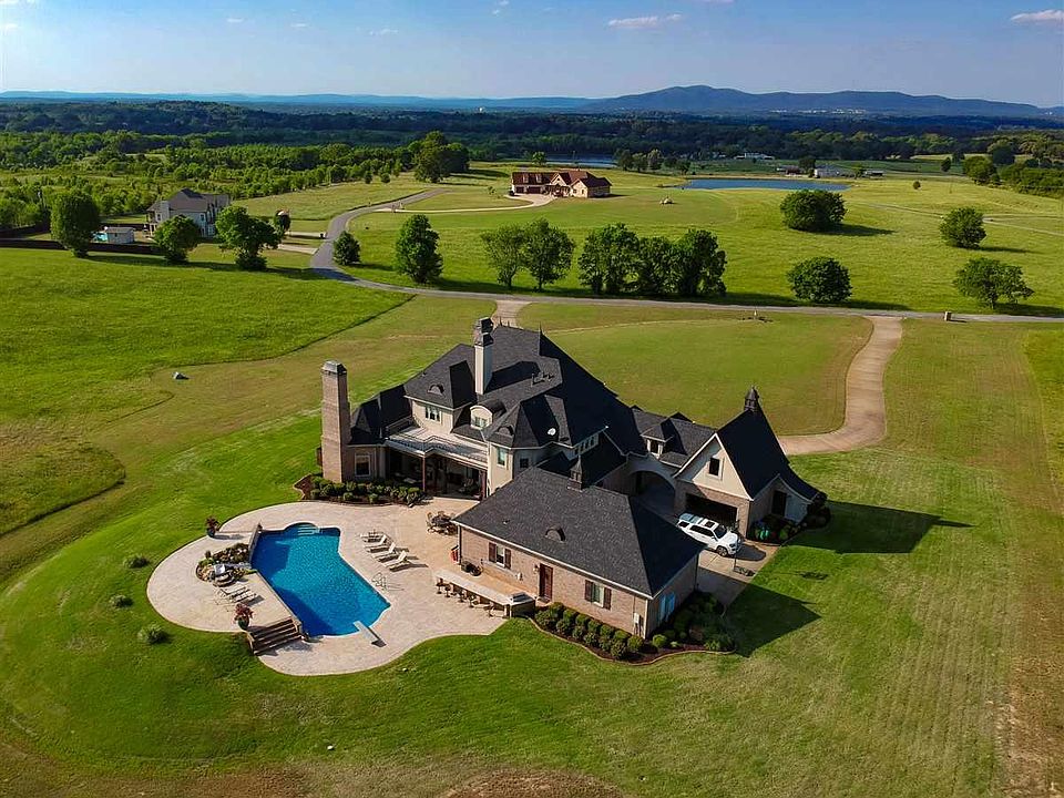 Exquisite. Classy. This one has it all. The kitchen is a Chef's dream for entertaining with the extra large island/bar, with beautiful granite, double oven & butler pantry. The Travertine flooring through out the living, dining & piano room to the gorgeous winding, wooden stair case that leads up to the theater room, bonus room w/bar that overlooks the saltwater pool below & 12 acres. 3 car attached + addl garage. 3 H&A units, sprinkler system. Outside shed for tractor.