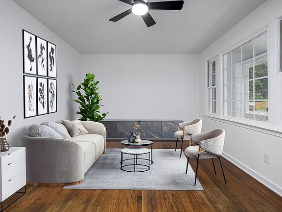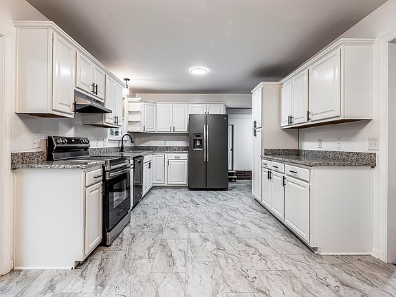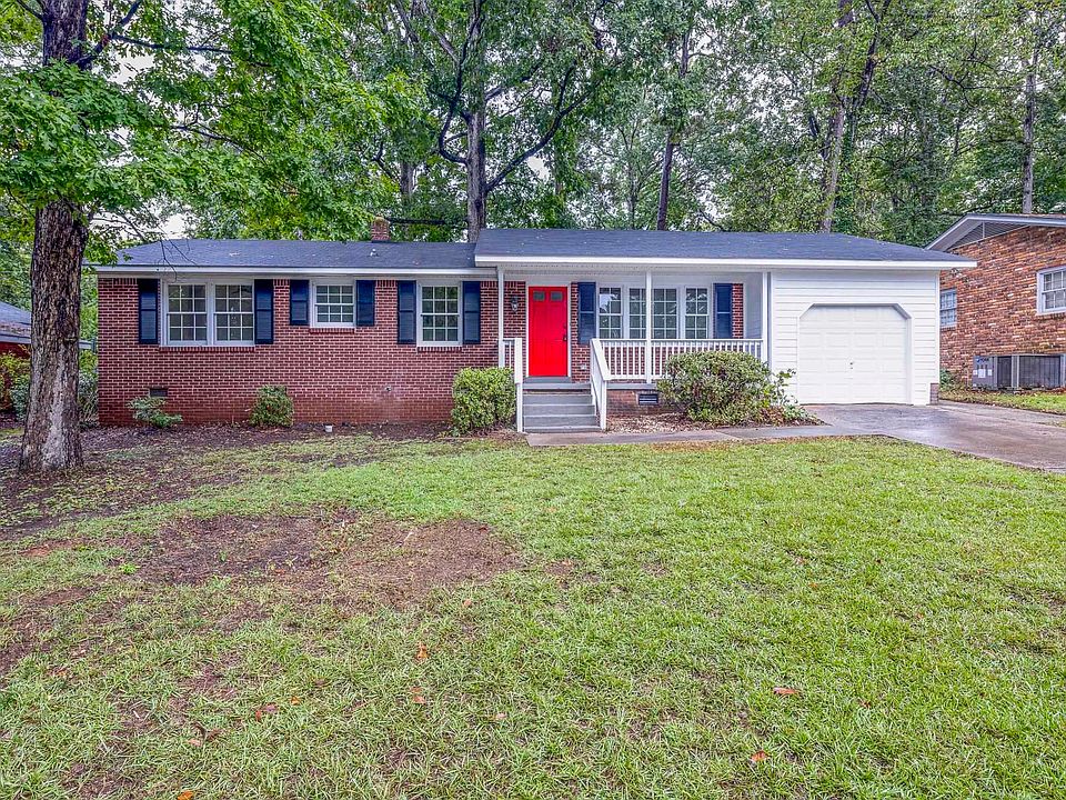 Covered front porchUpdated fixturesAttached half bathroomNew granite countertopsNew flooringHardwood floorsAmple closet space