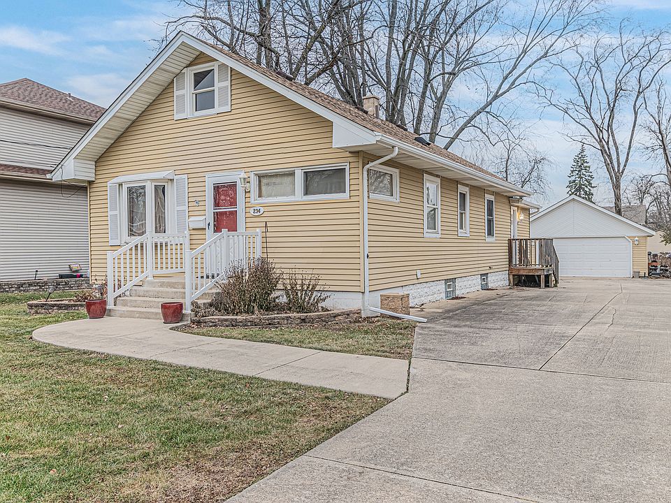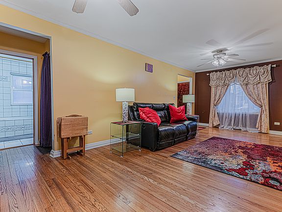 Cute as a button, well maintained step ranch. Open floor plan. Hardwood floors. The star of the home is the completely remodeled kitchen with breakfast bar, granite countertops, pull out cabinets, bar area, herb window and matching buffet in the dining room. There is a lovely, spacious dining area with lots of windows overlooking the backyard. The bathroom has a whirlpool tub, plenty of storage shelves and is accessable from the primary and hallway. There is a staircase to the attic, which can be converted to additional usable space for anything from an exercise area to an art studio! There is a full basement with exterior access. Great oversized 2 car garage. Concrete Driveway. Great location that is minutes from World Class Restaurants and Shopping, 355, Forest Preserves, Parks, schools and more! No signage in front of home.