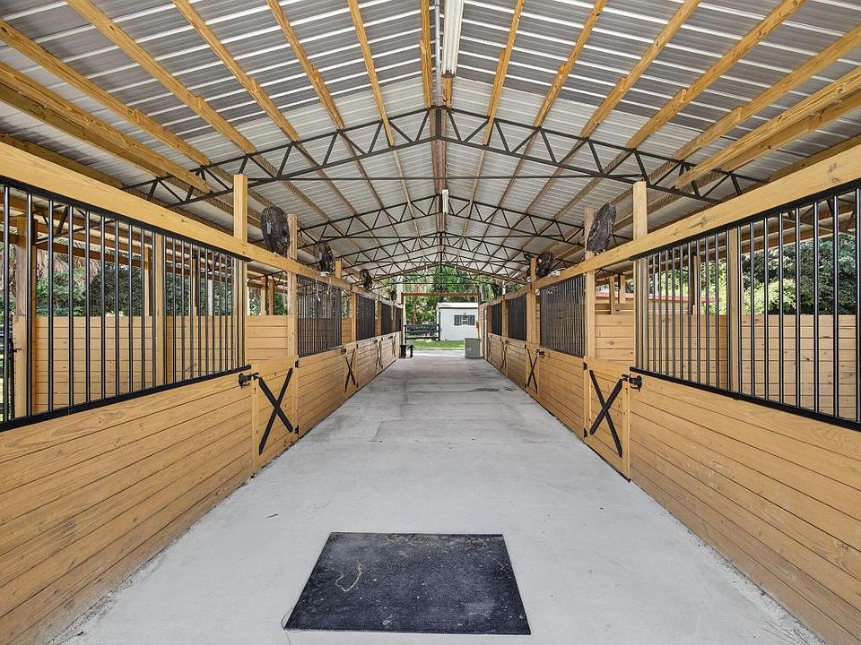 Loxahatchee Groves equestrian estate 10 min to WEF Near White Fences 5 shaded acres 9-stall barn with runouts 100 200 irrigated arena Turnkey cottage Set on 5 private, tree-lined acres in Loxahatchee Groves, this equestrian estate offers a rare combination of year-round comfort, seasonal flexibility, and professional-caliber horse facilities just 10 minutes from WEF and minutes from White Fences. The property includes a recently updated 4-bedroom, 2-bath single-family home with impact windows, new laminate flooring, new interior paint, a new AC system, a screened back patio overlooking the pond, and a covered front porch shaded by mature palms and natural canopy. This furnished wood-style cottage includes a full kitchen, laundry, chimney, and WiFi, and is available for both annual and seasonal terms. The equestrian infrastructure is designed for ease, safety, and efficiency. The 9-stall center-aisle barn features 12 14 matted stalls, each with a direct runout, excellent ventilation, durable metal roofing, mounted aisle fans, and wide walkways for grooming. Directly adjoining this setup is a separate 1-stall house with its own individual paddock, ideal for specialty housing and a practical solution for a stallion or any horse requiring a private turnout arrangement. A private A/C tack room provides washer, dryer, bathroom, 14 saddle racks, and a refrigerator. A dedicated feed room, double wash racks, manure pit, and trailer parking support a complete working program. Multiple shaded holding areas and an additional stall structure increase flexibility for rotation and management. A Gator is available for use as part of the rental. The 100 200 irrigated arena offers quality footing and full fencing, suitable for flatwork, training rides, and lessons. A round pen adds convenience for warm-ups and groundwork. Across the property, six large renovated paddocks provide generous turnout options, each with water access and secure fencing. The layout keeps horses comfortable under natural shade from surrounding palm clusters, bamboo stands, and mature hardwoods. The entire 5-acre parcel offers a peaceful, green setting with abundant trees, natural privacy buffers, open grassy areas, and thoughtful pathways connecting the home, cottage, barn, and paddocks. A stocked pond creates a scenic backdrop from the screened patio. Multiple gates and wide driveways accommodate horse trailers and deliveries, and two RV hookups allow additional support housing if needed. Although private, the property sits close to major equestrian venues, training centers, feed stores, veterinary services, making it an ideal seasonal base or annual home for riders. Nearby amenities add to the convenience of the location. A coffee shop is approximately 0.9 miles away, groceries are about 1.2 miles away, a pharmacy is roughly 1.3 miles away, and casual dining can be found within 1.1 miles. The nearest park with riding-friendly trails is about 1.0 mile from the property. Retail options sit within approximately 1.4 miles, and a local gym is around 1.2 miles away. The Loxahatchee Groves library is about 1.6 miles away, and Wellington Regional Medical Center, a major employer and resource, is a short drive away. These points anchor the property in a well-connected yet rural equestrian corridor. Annual rent is $10,000 per month, with seasonal rates available upon request and a four-month minimum stay for seasonal terms. Both the main home and the cottage can be configured to accommodate a range of living arrangements, and the full equestrian setup supports a variety of riding disciplines. With its proximity to Wellington's showgrounds, extensive equestrian trail networks, natural setting, and professional facilities, this property offers an exceptional opportunity for those seeking a complete, private horse-ready estate in the heart of Palm Beach County's riding community.