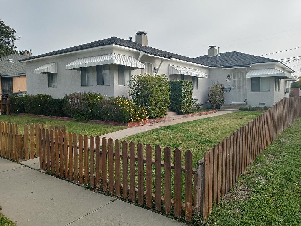 Very cute 2bed/1 bath front unit with hardwood floors, and newer kitchen stove and refrigerator. Ceiling fans in all rooms, and a welcoming front yard entrance. In unit hookup available for a stackable apartment sized washer/dryer. Central air/heat. 1 car garage & 1 outside parking spot included. Great neighborhood and convenient location to freeways, shopping, and more. Ideal candidates will have a credit score of 650 or higher and income must be 3 times or more than the rent. Rent includes water and trash. A small well behaved dog will be considered with an additional deposit fee.