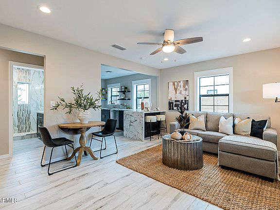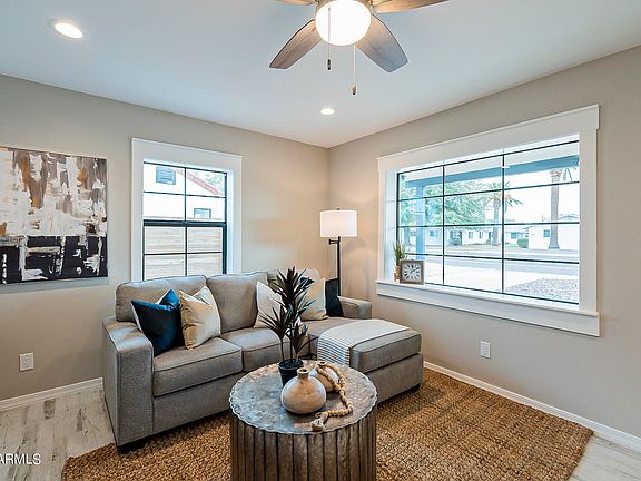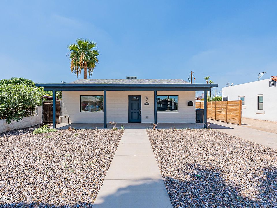 FULLY REMODELED 2 bed 1 ba single level home in historic Coronado district in Phoenix! Essentially new construction with home taken to the studs, upgraded plumbing & electrical, NEW roof, NEW A/C, NEW windows. Open great room floor plan with high ceilings and bright natural light throughout. Kitchen features espresso cabinets + pantry for storage, NEW stainless steel appliances incl GAS range, undermount sink, and granite counters with STUNNING waterfall edge. Two generously sized bedrooms offer walk-in closets + bath w/ dual vanity, granite counters, frameless glass shower w/ BEAUTIFUL custom tile surround. Don't miss the newly constructed inside laundry! Fully permitted upgrades. Backyard offers paved patio, 8' gate, and large lot, perfect for a buyer who wants to build an ADU! Great location near freeways, downtown, and local restaurants!