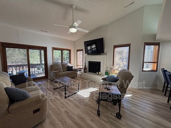 Relax by the cozy gas fireplace or unwind on the private back deck overlooking open land for added privacy and serene views. Perfectly located near hiking and biking trails, great restaurants, and downtown Flagstaffideal for extended stays, corporate housing, or seasonal living.