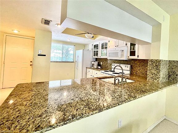 Rare opportunity located at Naples Trace in North Naples. This two bedroom/two bath unit is located in the one story building making the unit very quiet and private. Easy walk-in, walk-out accessibility makes this condo a true gem. The designated parking spot in just outside your front door and there is plenty of guest parking! This bright and welcoming unit is only steps away from the community pool and a small grill area for the BBQ master in your family. Condo is being sold turn-key and water heater was replaced in May 2023. Naples Trace is conveniently located near restaurants, shopping, beaches and all that Naples has to offer!