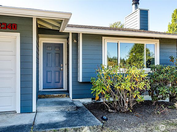 Charming single level home offering 3 bedrooms, 1 3/4 baths, and 1,530 sq. ft. of living space. Situated on a comer lot w/ a peek a boo water view from front yard, this home features new Hardi plank siding installed in 2022, an attached garage, a fully fenced backyard. Inside, enjoy both a spacious living room w/ a wood burning fireplace, a cozy family room w/a newer pellet stove installed in 2022, plus a kitchen w/ a convenient breakfast bar. The French doors from the family room open to a back deck, perfect for entertaining or relaxing outdoors. The thoughtful layout provides comfort and versatility. This home is close to the Olympic Discovery Trail and ready for its new owners!