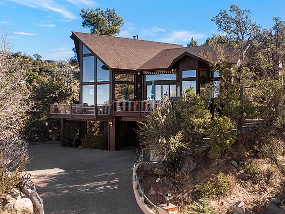 SAN FRANCISCO PEAKS AND BEYOND. Beautiful home sitting on a hillside across from THUMB BUTTE, looking out to the views of San Francisco Peaks, Red Rocks, City Lights, and more. AS you enter the double door entry to this beautiful home you will sense the inviting warmth, then soon find yourself looking out on a vast great room with floor to ceiling windows of 25 ft. then beyond to the views. This home has 3 bdrms, 3 1/2 baths, a 4th bdrn located on the lower level that can easily be used as a studio, game room, mother-in-law quarters, office, or guest quarters. Wake up to those incredible views from the Master Suite. Maybe have a cup of coffee off your private deck. Master bath has a jetted tub, walk in shower, steam & sauna, large walk in closet & his & her sinks.
