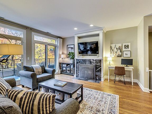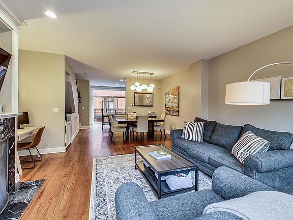 This beautiful three story townhome with an attached garage space and private rooftop deck is located in one the most private and secluded riverfront communities in the city. Located at the combined boundaries of NW Lincoln Park, West Lakeview, Logan Square and Avondale. This spacious 2 bed / 1.1 bath welcomes you to a private entry foyer with inside access to the garage. The main level features high ceilings, plentiful light from south and north exposures, solid oak hardwood floors, 1/2 bath, dining room, and a spacious living room with a gorgeous stone surround fireplace and office nook connecting to a full unit-width deck. Also featured on the main level, a Chef's kitchen with beautiful 42" solid wood cabinetry, SS appliances, breakfast bar, custom backsplash and granite countertops. The top floor features a large primary bedroom with separate closets for two, second bedroom, separate washer and dryer, and a spa-like bathroom with dual vanity, ample counter space and custom fixtures. A private, over-sized, Trex rooftop deck awaits - a dynamic area for a tranquil outdoor getaway or entertaining space. Located in a pet-friendly location with a peaceful tree-lined riverwalk, kayak drop, and an open green space. A highly-desired community with great local amenities, nature, privacy, and living space that is hard to find. Well-ran, professionally managed association, low assessments. Taxes do no reflect homeowner exemption which is eligible and in the process of being filed.
